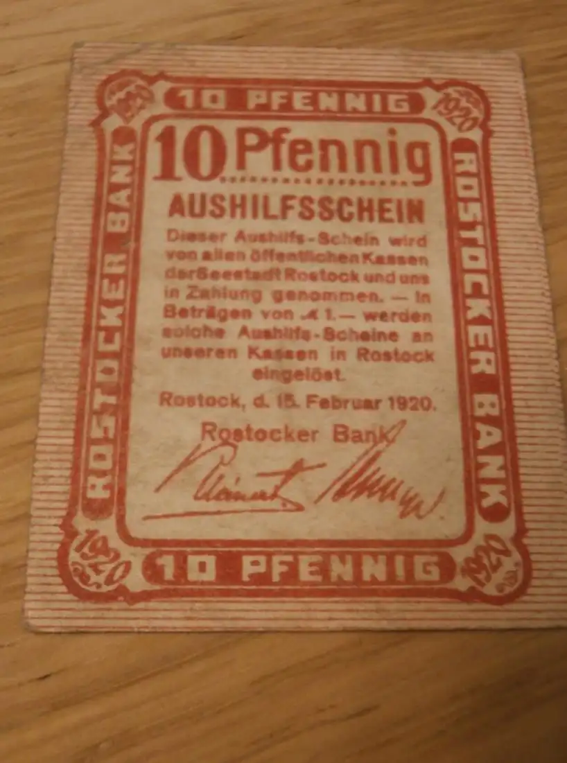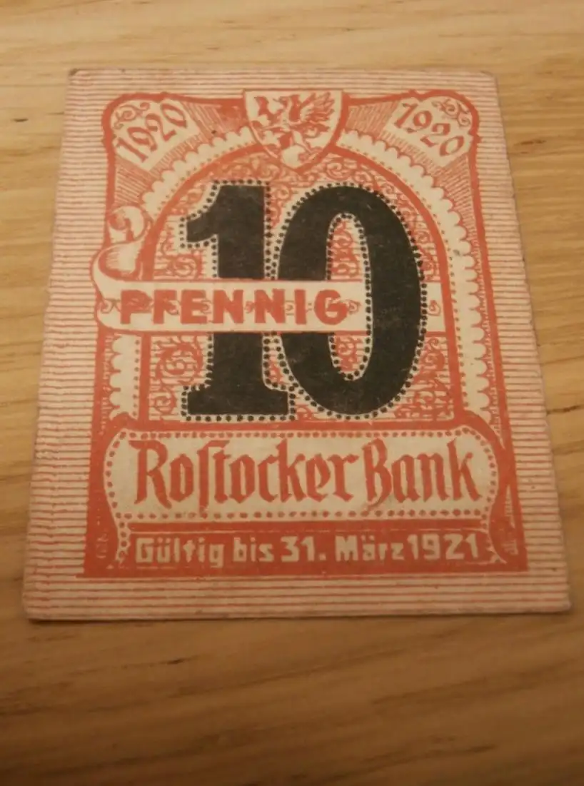 Rostocker Bank 1920 , alte Marke , 10 Pfennig , Notgeld Rostock , Aushilfsschein , Mecklenburg !!AZ-WR/1h