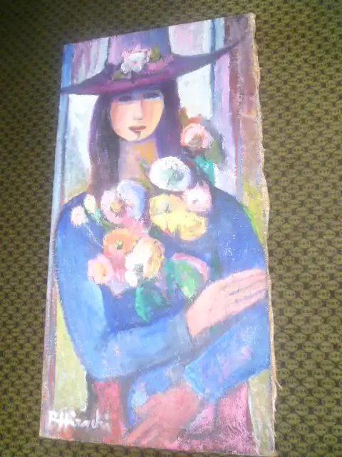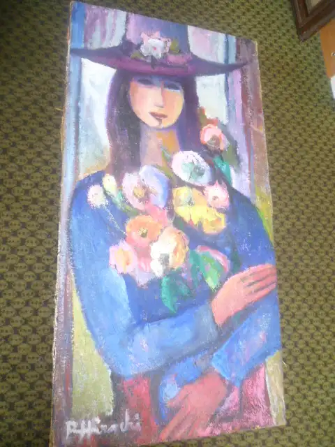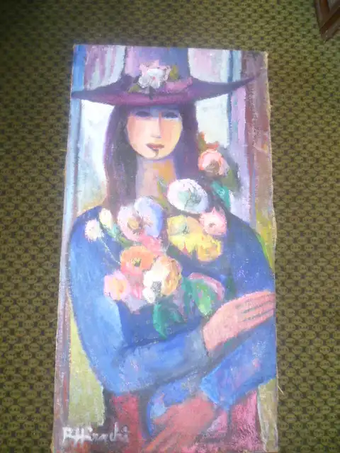 Rudolf Hirschi 1917 Stuttgart – 2001 hier . "Model mit fliederfarbenem Hut und buntem Blumenstrauß" Frühwerk