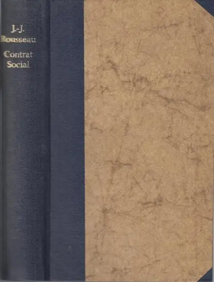 18 x 11,5 cm. Demi-toile bleue privée avec titre de dos en or, le papier de la couverture en beige marbré. 514 pages, partiellement un peu tachées de rouille. De la possession du professeur d'études romanes et littéraires Erich Loos (4 septembre 1913 à Wetzlar - 2 juillet 2006 à Berlin) avec quelques marques de crayon effaçables à la main. Toujours bon exemplaire. --- Rousseaus 'Gesellschaftsvertrag oder Prinzipien des Staatsrechts' in blauem neuen Halbleinen mit goldgeprägtem Rückentitel und beige marmoriertem Bezugspapier. Eingebunden ist der originale Buchblock mit 514 Seiten, einige davon schwach randfleckig. Aus dem Besitz des Romanisten und Literaturwissenschaftlers Professor Erich Loos (4. September 1913 in Wetzlar - 2. Juli 2006 in Berlin) mit wenigen radierbaren Bleistift-Anstreichungen von dessen Hand. Noch gutes Exemplar