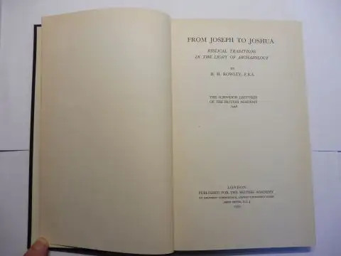 Rowley, F.B.A. *, H. H: FROM JOSEPH TO JOSHUA - BIBLICAL TRADITIONS IN THE LIGHT OF ARCHAEOLOGY. The Schweich Lectures of the British Academy 1948.