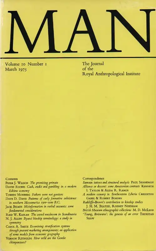 Royal Anthropological Institute of Great Britain and Ireland (Hrsg.): Man, N.S., Volume 10, Nr.1, March 1975: the journal of the Royal Anthropological Institute.
