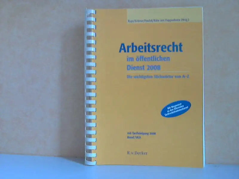 Seitenecken sind teils geknickt, das Buch ist altersbedingt in einem gutem, gebrauchten Zustand, Wo der BAT stark reguliert war, bietet das neue „schlanke" Tarifrecht mit dem TVöDAV-L viele Gestaltungsmöglichkeiten, aber auch völlig neue Herausforderungen: Sie müssen nun verstärkt auf das allgemeine Arbeitsrecht zurückgreifen und noch mehr die aktuelle Rechtsprechung berücksichtigen. Hierbei unterstützt Sie dieser findige Helfer, der das Arbeitsrecht im öffentlichen Dienst ganz genau kennt. ... ohne lange Theorie übersetzt das Lexikon Juristendeutsch in verständlich-kompakte Erläuterungen zu den einzelnen Stichwörtern. Klare Handlungsanleitungen, wertvolle Tipps, einfache Beispiele und sichere Checklisten sowie Musterverträge erleichtern Ihnen die Anwendung in der Praxis. So vermelden Sie souverän Fehler und Prozessrisiken und sichern sich den entscheidenden Zeitvorteil. (vom Einband) aus dem Inhalt: Abmahnung - Altersteilzeit - Änderungskündigung - Anfechtung - Arbeitsrechtliche Konkurrentenklage - Arbeitsschutz - Arbeitszeit - Ärztliche Einstellungsuntersuchung - Aufhebungsvertrag - Ausschlussfrist - Befristetes Arbeitsverhältnis - Beschäftigungszeit - Betriebsrat - Betriebsübergang - Betriebsvereinbarung - Beurteilung - Bewerberauswahl - Datenschutz - Dienstvereinbarung - Direktionsrecht - Eingruppierung - Einigungsstelle - Elternzeit - Entgeltfortzahlung) - Erwerbsminderung - Fürsorgepflicht - Gerichtsverfahren - Haftung des Arbeitgebers - Haftung des Arbeitnehnners - Internet am Arbeitsplatz - Jugend- und Auszubildendenvertretung - Kündigung - Kündigungsschutz - Leistungsorientierte Bezahlung - Mitarbeitergespräche - Mobbing - Outsourcing -Personalakte Personalgestellung - Personalvertretung - Personalvertretungsrechtliche Beteiligung - Schwerbehinderte Menscheri - Stellenausschreibung - Telearbeit - Treuepflicht - Wehr- und Zivildienst - Zeugnis - Zulagen und Zuschläge - Zusatzversorgung - Stichwortverzeichnis Beschreibung vom Antiquariat Ardelt 1k2a ISBN-Nummer: 3807322216 Antiquariat Ardelt