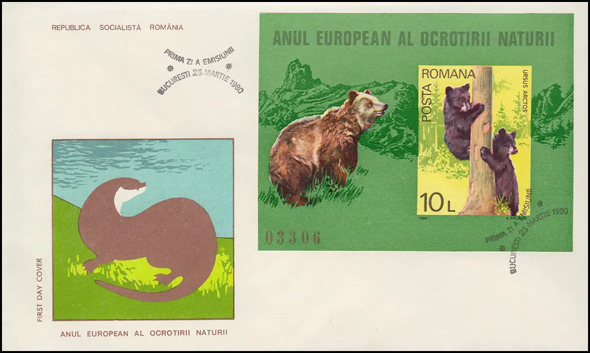 Rumänien Block 168 Naturschutz Braunbären, Mitläufer-Ausgabe 1980, FDC