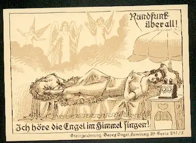 Rundfunk überall ! Ich höre die Engel im Himmel singen. Steinzeichnung G. Vogel. Hamburg. - Nicht gelaufen. (Technik, Rundfunk)