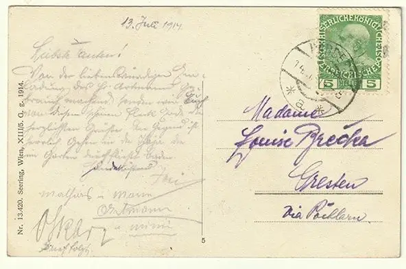 Bemerkungen: Gelaufen 13. Juli 1914. .