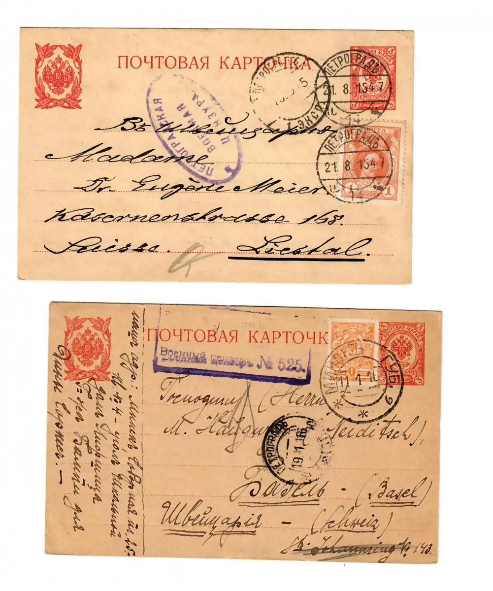 Rus: 5x Postkarte 1913/17 in die Schweiz