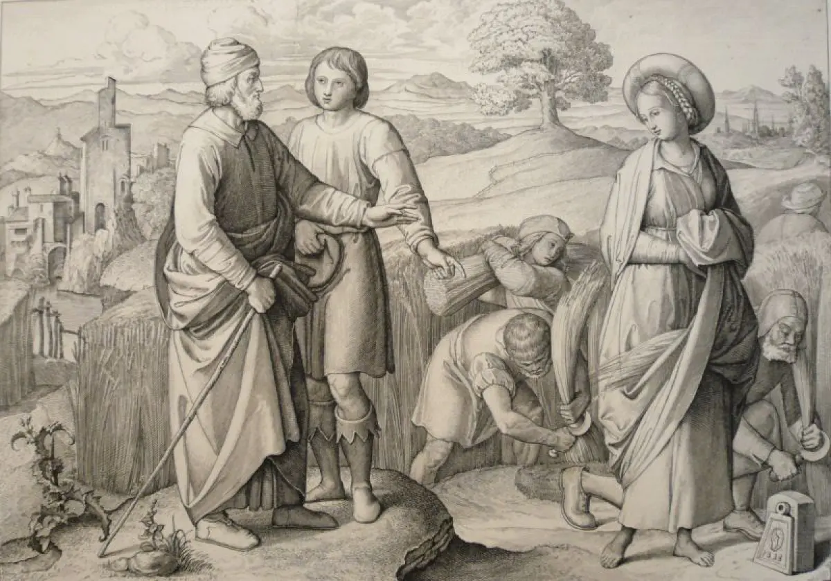Ruscheweyh, Ferdinand (1785 - Neustrelitz - 1846),, Ruth und Boas. Radierung nach Friedrich Overbeck
