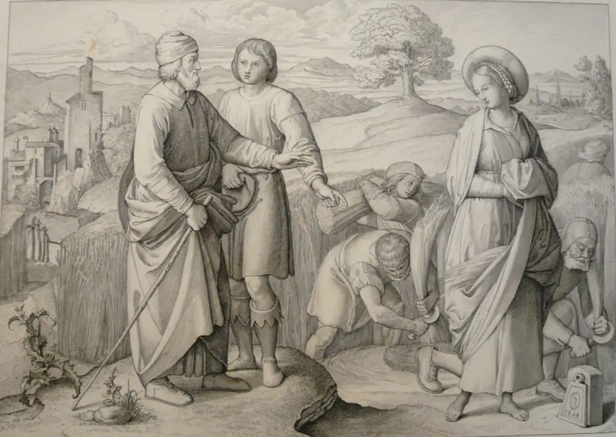 Ruscheweyh, Ferdinand (1785 - Neustrelitz - 1846),, Ruth und Boas. Radierung nach Friedrich Overbeck