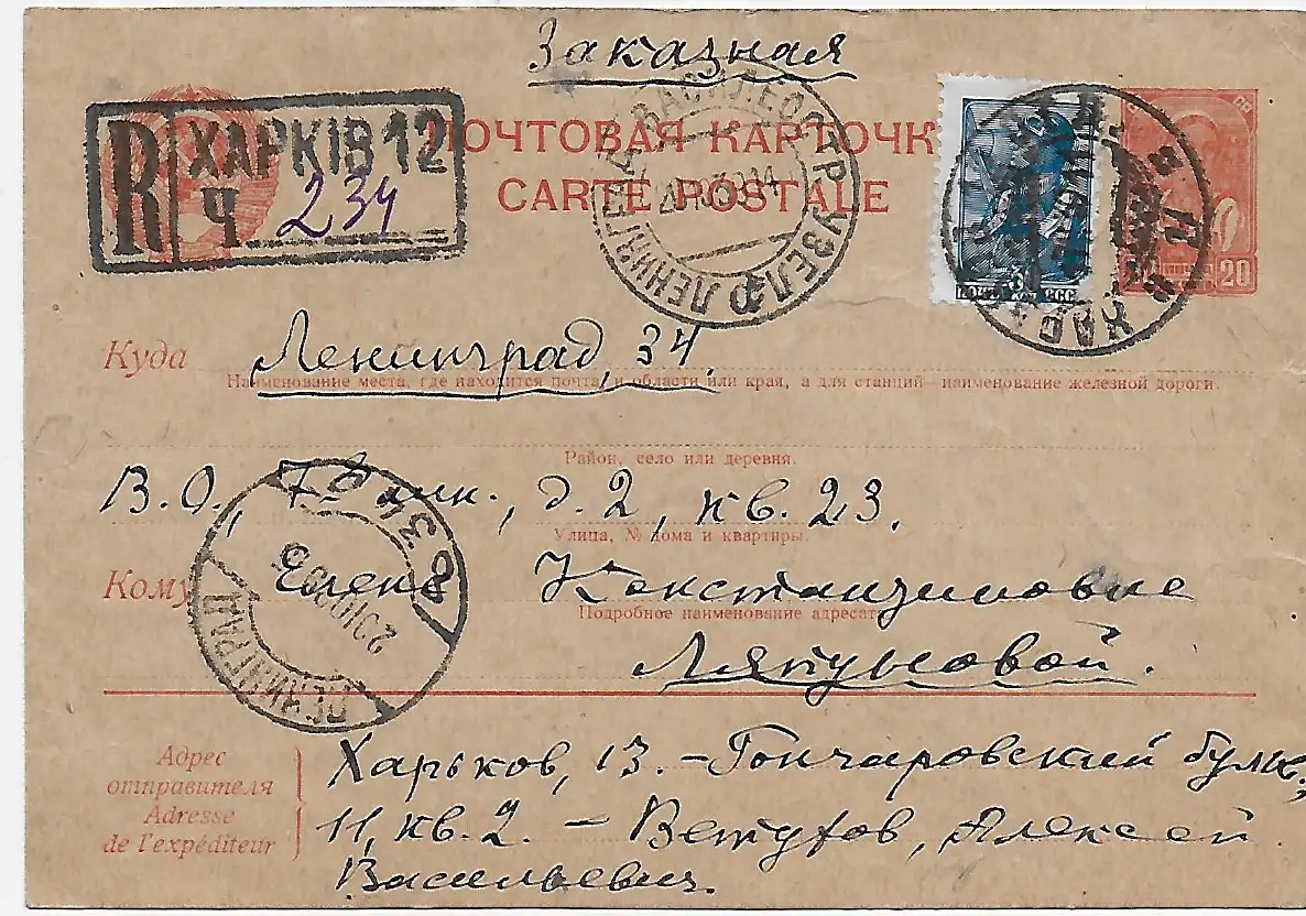 Russland: Einschreiben Postkarte 1930