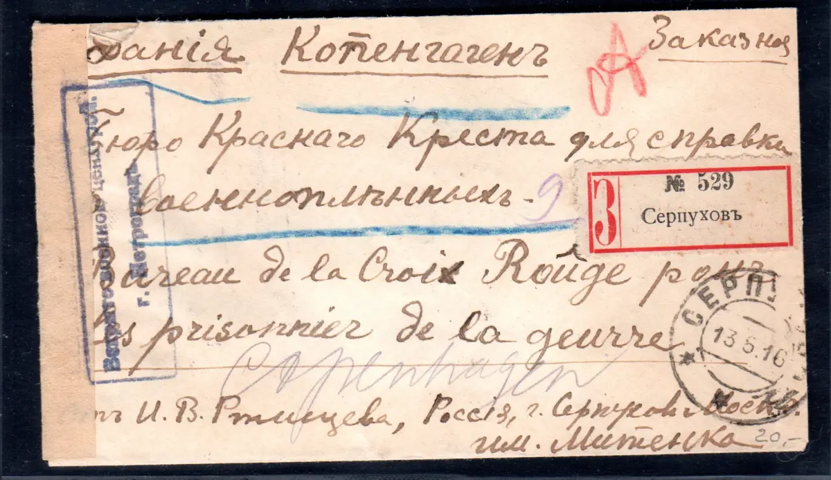 Russland, Einschreiben - Zensurbrief Serpuchow - Kopenhagen