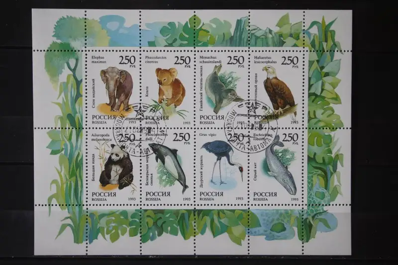 Rußland, Kleinbogen Tiere 1993; 8 verschiedene im KB