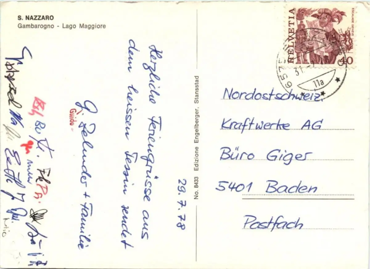 Danke. Alles Bestens. Können Sie mir allenfalls mitteilen, aus welchem Jahr die Postkarte stammt? Besten Dank.