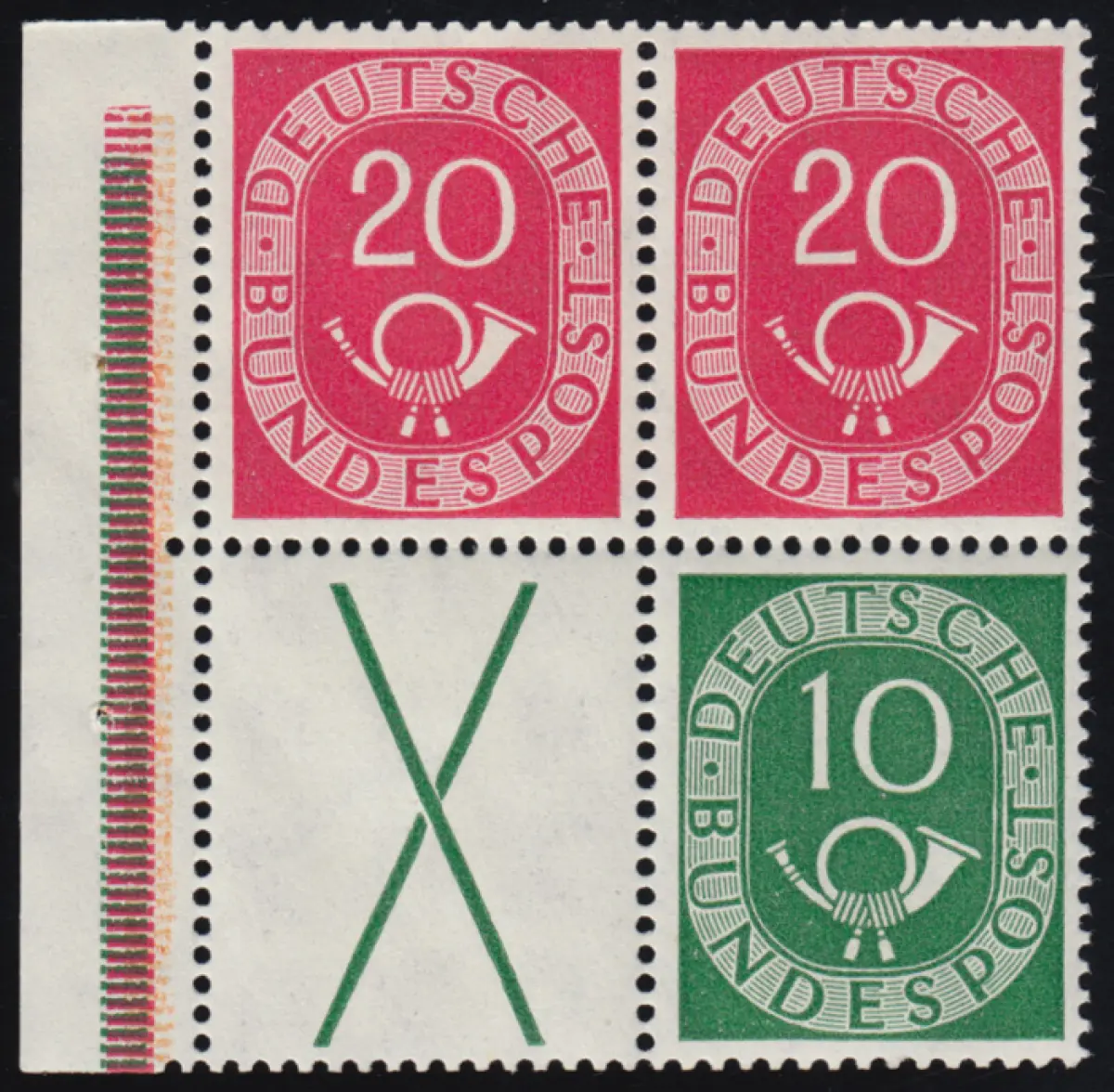 S5/S9 Zusammendruck Posthorn als Viererbock mit RLV V (Variante), ungefaltet, **