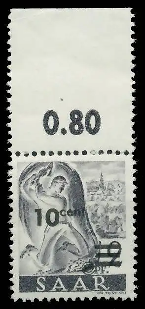 10 C auf 2 Pfg Wert aus der Freimarkenausgabe Berufe und Ansichten aus dem Saarland mit Aufdruck (Neuauflage)