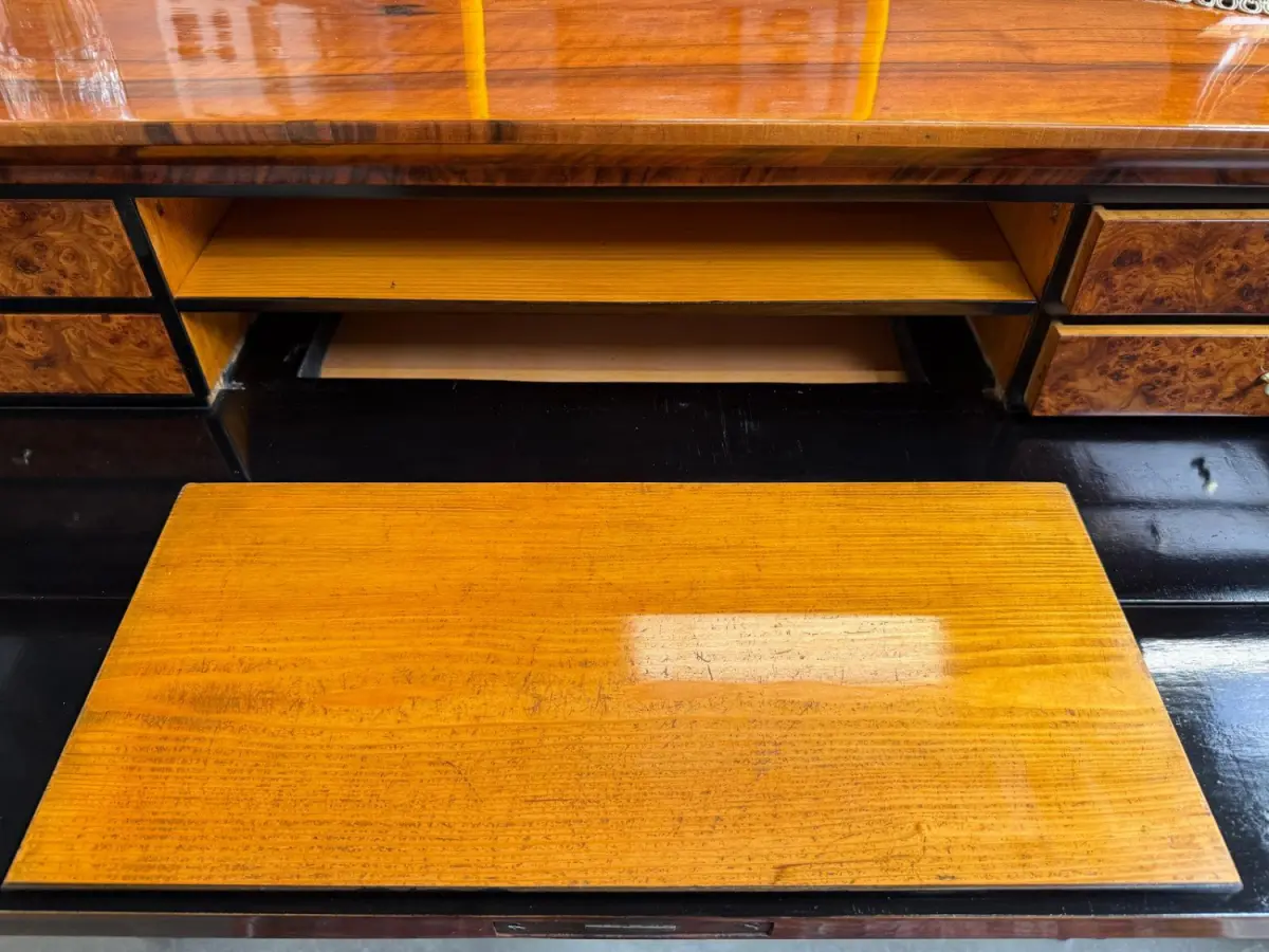 Durch hervorklappen der 1. Ladenblende wird der Sekretärteil mit seinen edlen kleinen 4 Laden begehbar.