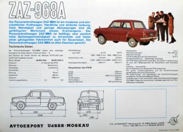 SAS 968 A Saporoshez Modellprogramm 1972 Automobilprospekt (9713)