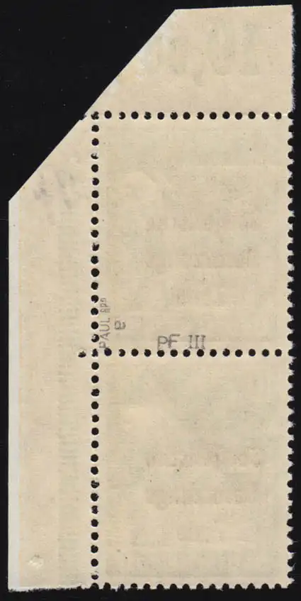 Sehr seltener Plattenfehler weißer Fleck unter dem rechten Arm des Sämanns (Feld 10), postfrisch einwandfrei im senkrechten Paar mit Vergleichsstück, tiefst geprüft Paul BPP PLF III.