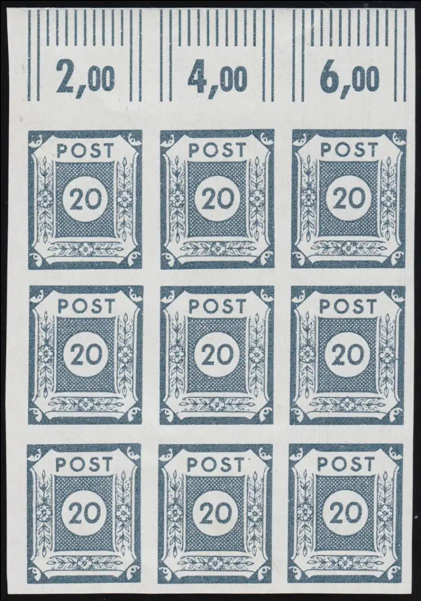 SBZ 48Ab Ziffer 20 Pf, 9er-Block - PLF V (F.22) + VI (F.13), gp Dr. Jasch BPP