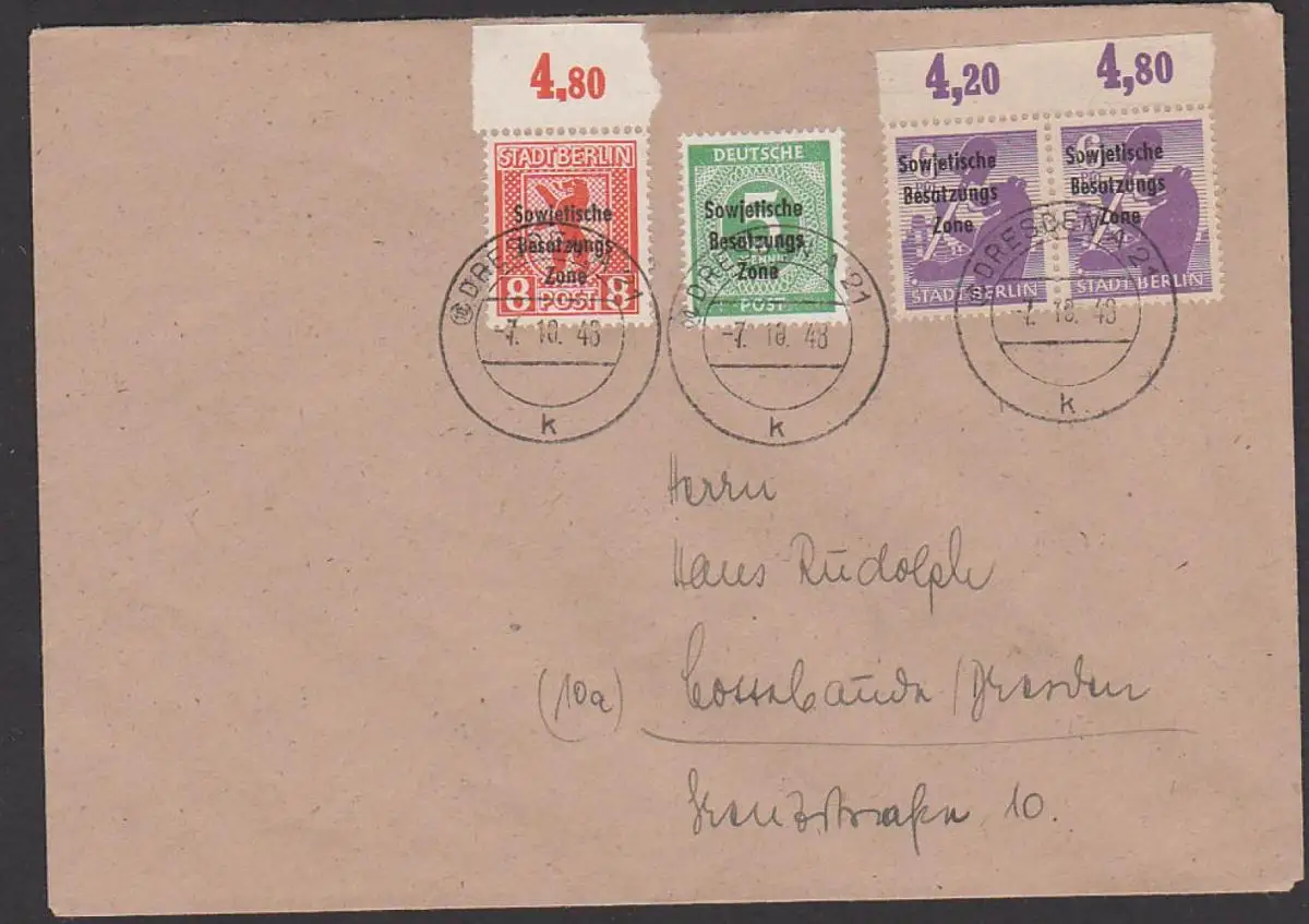 SBZ Bärenausgabe Berlin Oberränder in MiF mit 5 Pf. Ziffern - je mit SBZ-Aufdruck auf Fernbrief