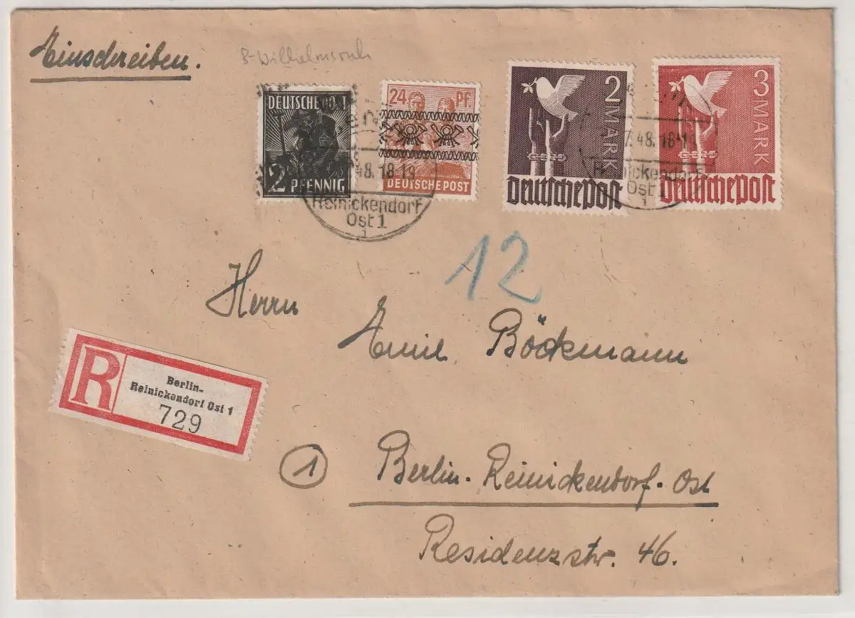SBZ/Berlin: R-Brief mit MiF Bez.-handstpl./10-fach/Posthörnchen