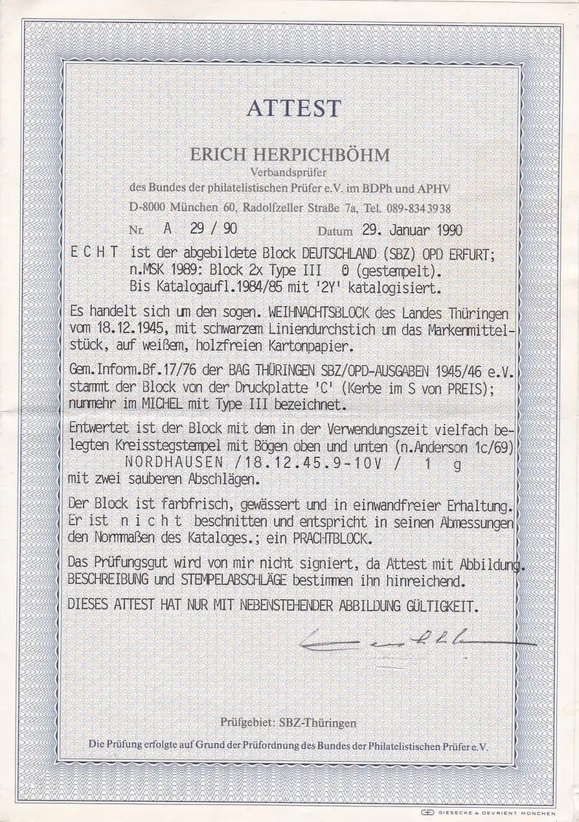 SBZ: Block 2x Type III, gestempelt Nordhausen 1945, BPP Attest
