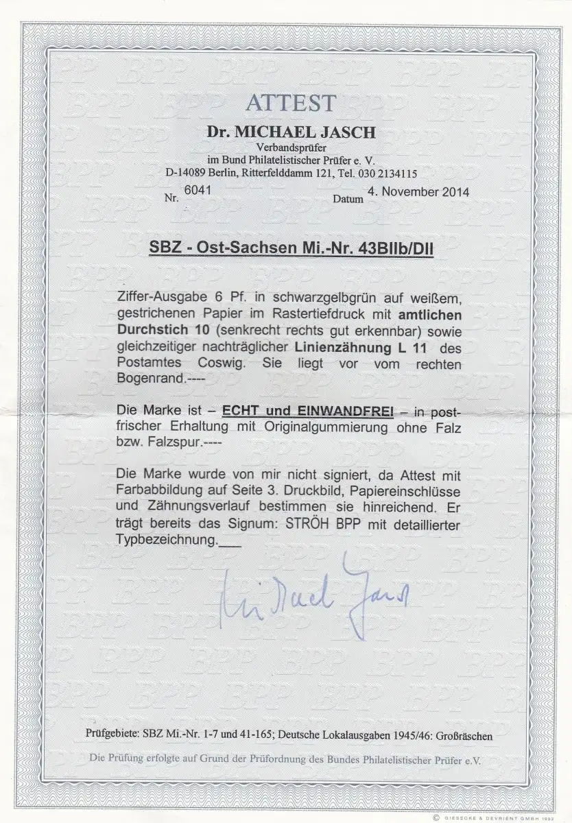 SBZ: MiNr. 43 BIIb/DII, postfrisch, BPP Attest