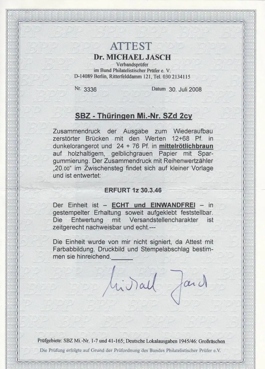 SBZ: MiNr. SZd 2cy, gestempelt Erfurt, BPP Attest