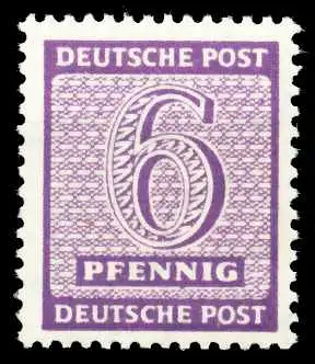 6 Pfg Wert aus der Freimarkenausgabe Ziffern (Wasserzeichen X - Stufen von links fallend)