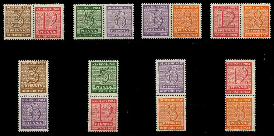 Waagerechte und senkrechte Zusammendurcke aus der Ausgabe Ziffern (MichelNr.: 126, 128, 129, 130, 132)