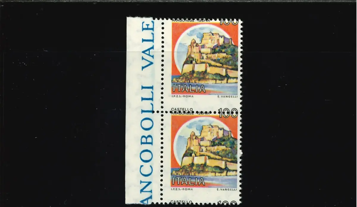 MNH - Vollgummi - BURGEN 100 L. STARK IN HORIZONTALER RICHTUNG VERSCHOBENE VERZAHNUNG VERTIKALES RANDMOMENT - Kat. euro 200 Cod. ITAV_0530