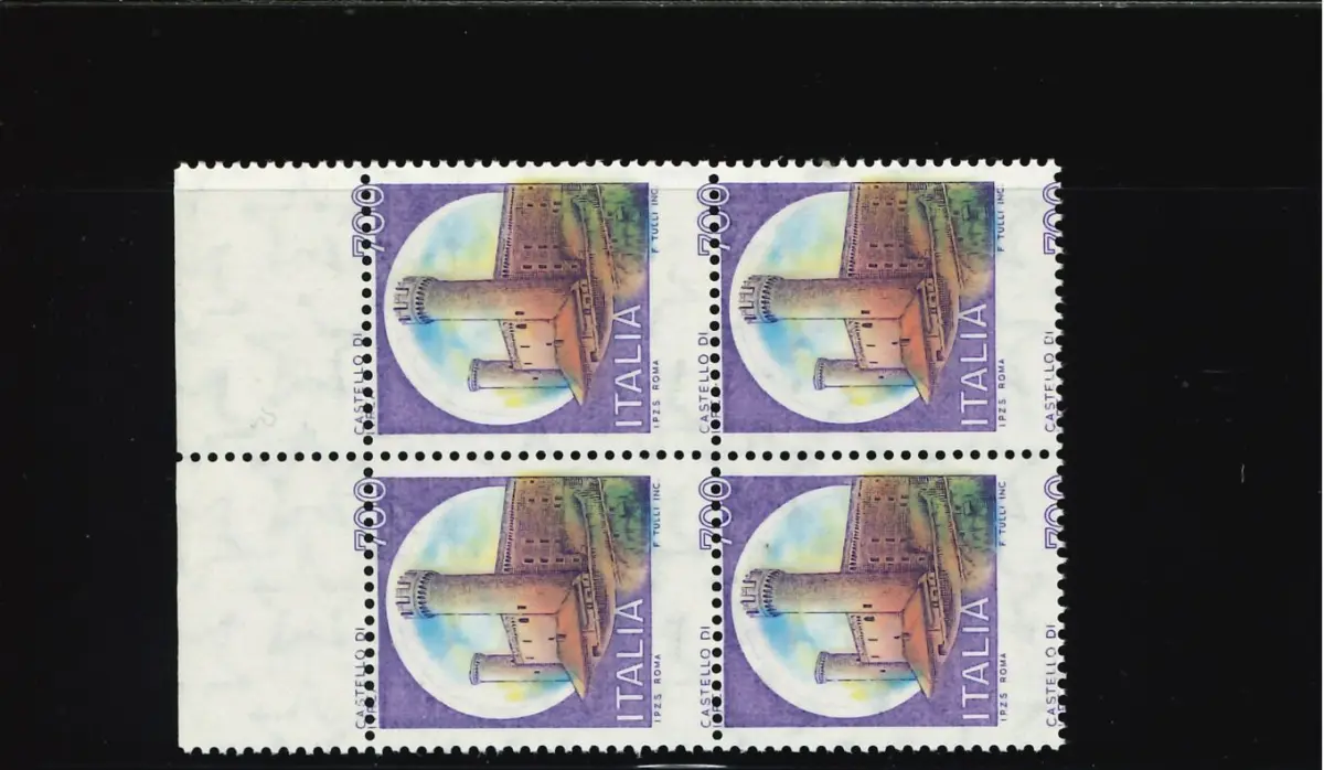 MNH - Vollgummi - CASTELLI 700 L. STARK VERSCHOBENE HORIZONTALE VERZAHNUNG IN VIERTELOBERKANTE - Kat. euro 280 Cod. ITAV_1243