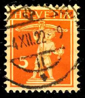 5 C Wert aus der Freimarkenausgabe "Tellknabe", in der Type III (Sehne hinter dem Schaft, Sockel verschieden hoch)