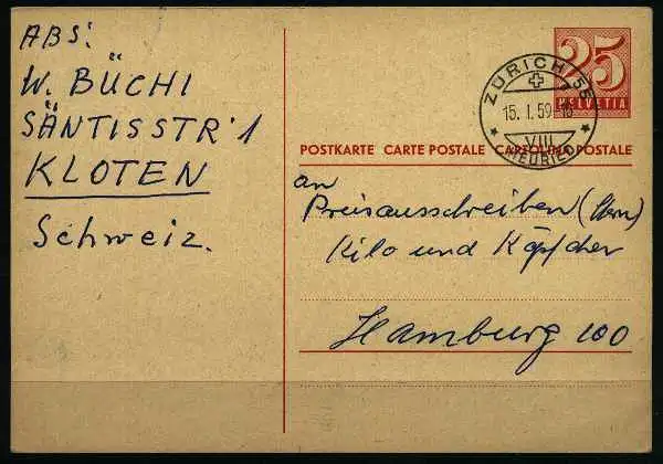 Auslandspostkarte von Zürich (CH) nach Hamburg (D)