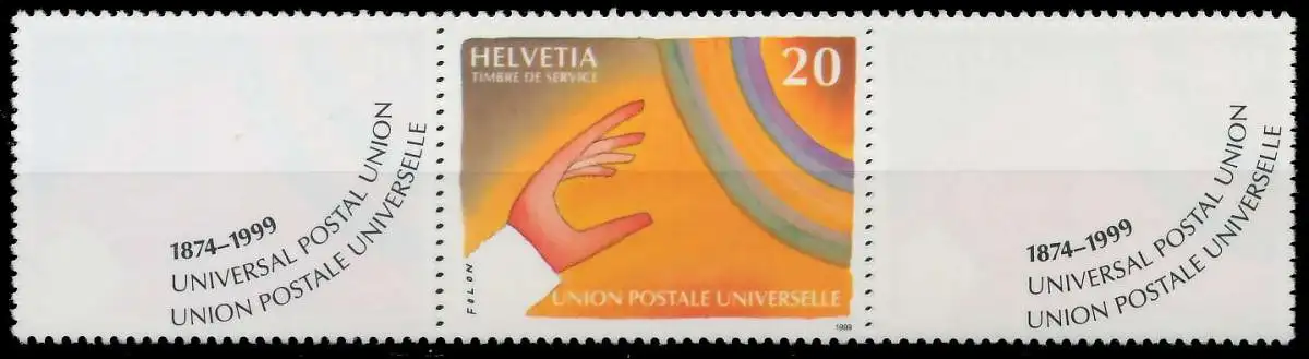 20 C Wert aus der Ausgabe 125 Jahre Weltpostverein, aus dem Zusammendruck-Kleinbogen von 1999, senkrechtes Paar mit Zierfeld