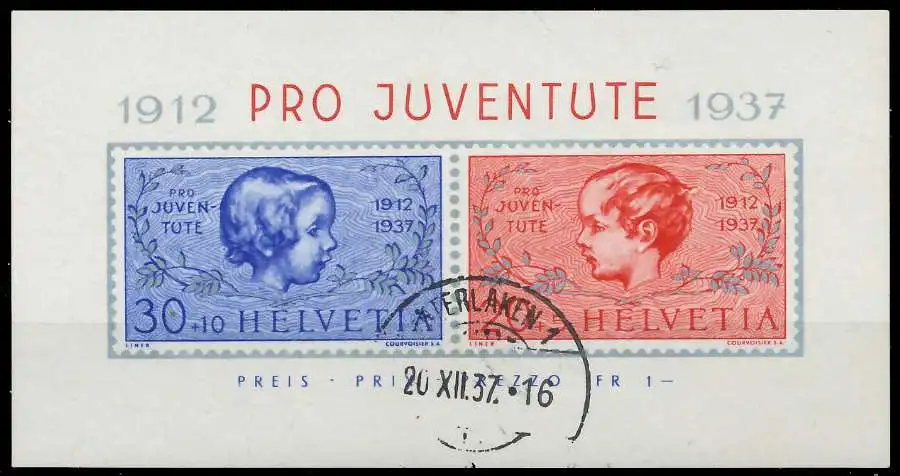 Blockausgabe Pro Juventute von 1937