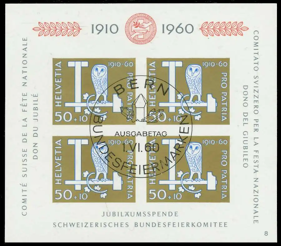 Blockausgabe Pro Patria von 1960, mit ESST und Formnummer 8