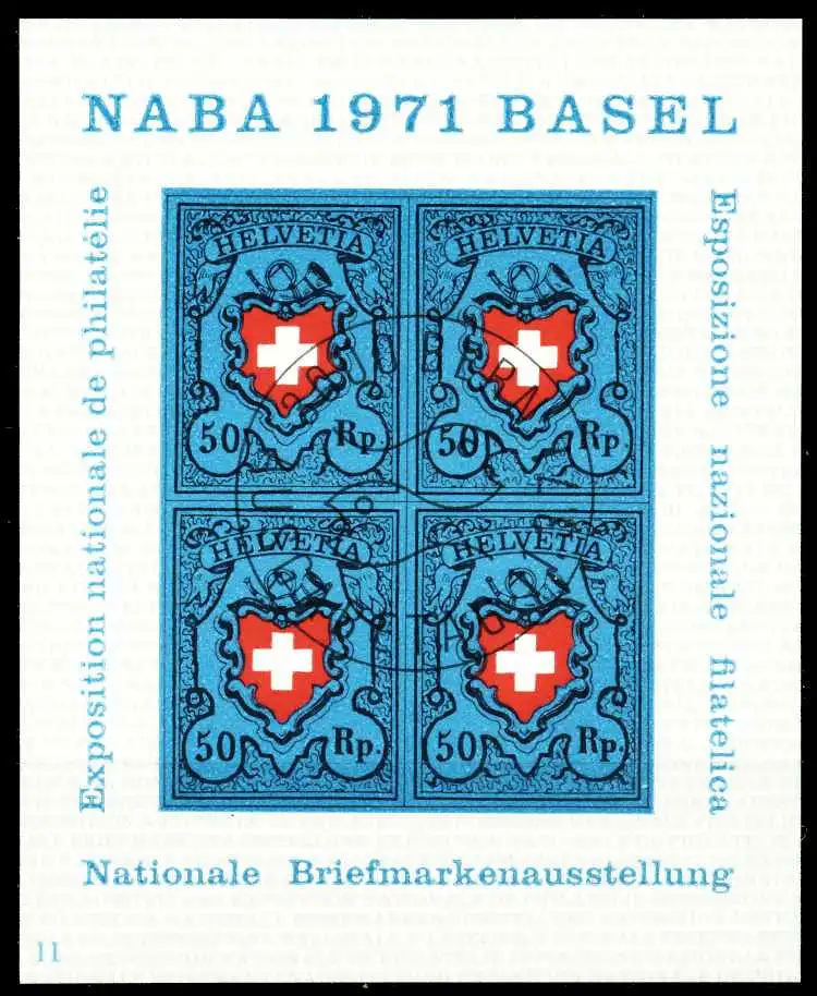 Block-Ausgabe NABA 1971 Basel, mit ESST mit Formnummer 1 (Die Beispielabbildung hat u.U. eine andere Formnummer)