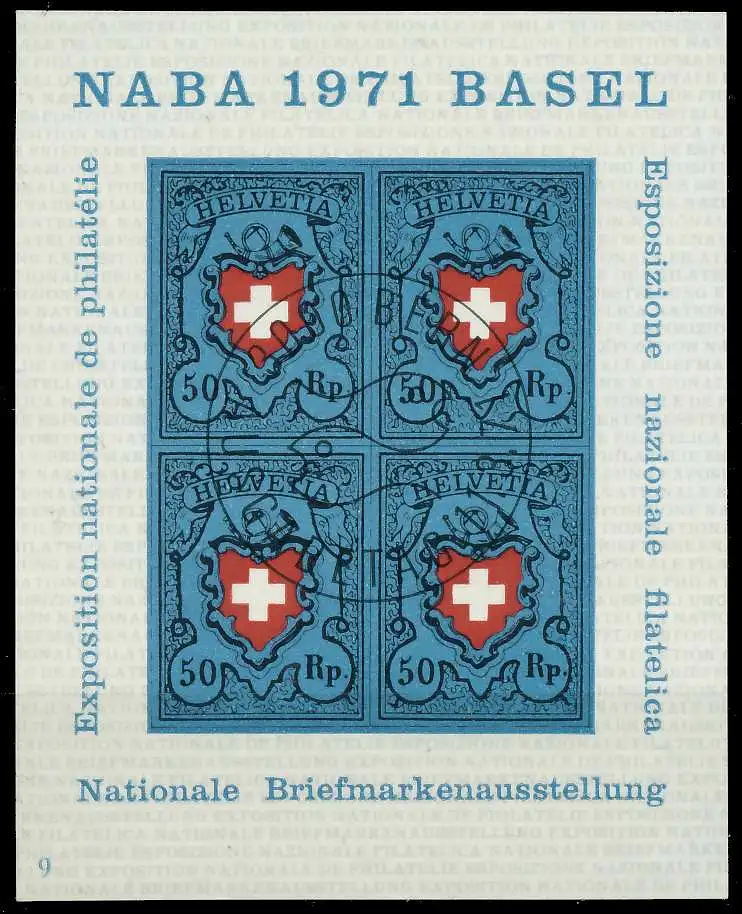 Block-Ausgabe NABA 1971 Basel, mit ESST, Formnummer 9