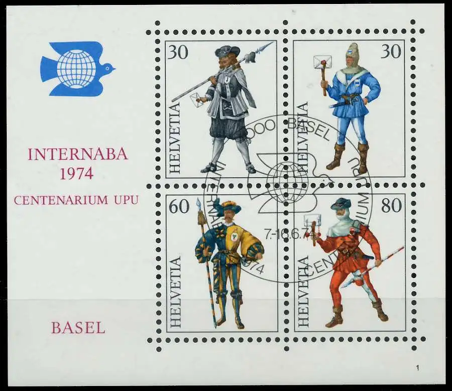 Block-Ausgabe INTERNABA 1974 , mit Sonderstempel und Formnummer 1