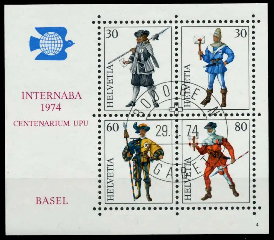 Block-Ausgabe INTERNABA 1974 , mit Ersttagssonderstempel und Formnummer 4