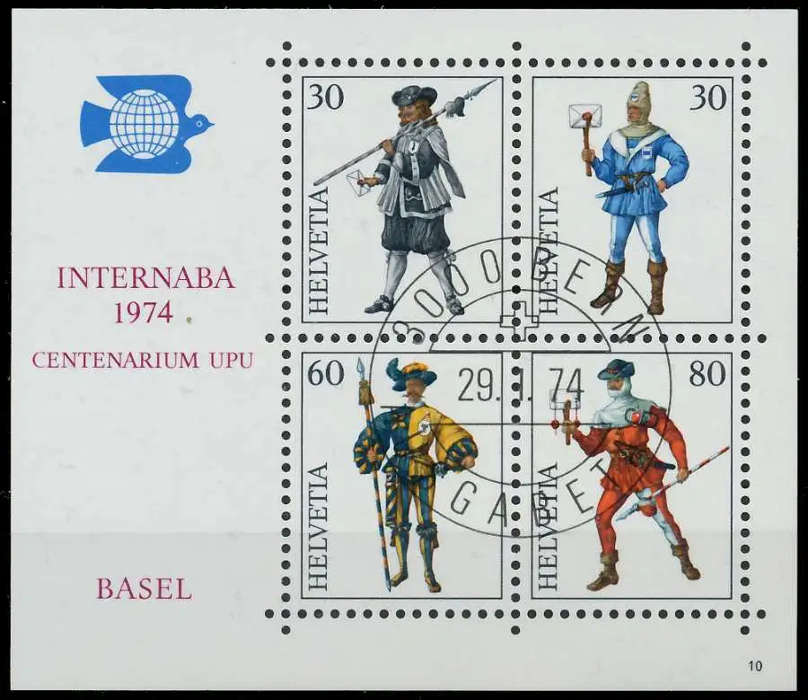 Block-Ausgabe INTERNABA 1974, mit Ersttagssonderstempel und Formnummer 10
