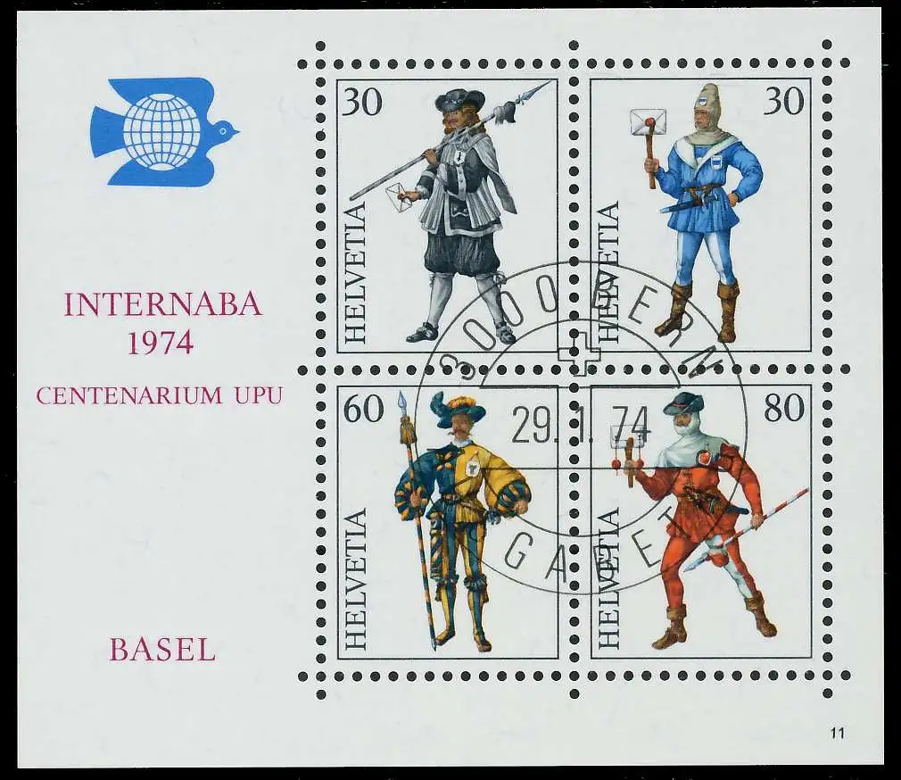 Block-Ausgabe INTERNABA 1974 , mit Ersttagssonderstempel und Formnummer 11