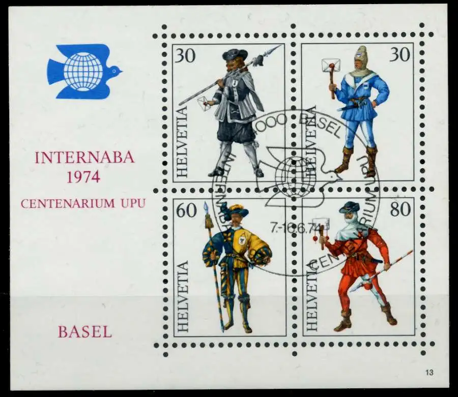 Block-Ausgabe INTERNABA 1974 , mit Sonderstempel und Formnummer 13