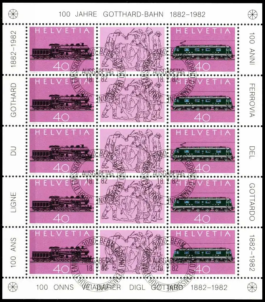 Kleinbogen-Ausgabe 100 Jahre Gotthard-Bahn, mit ESST