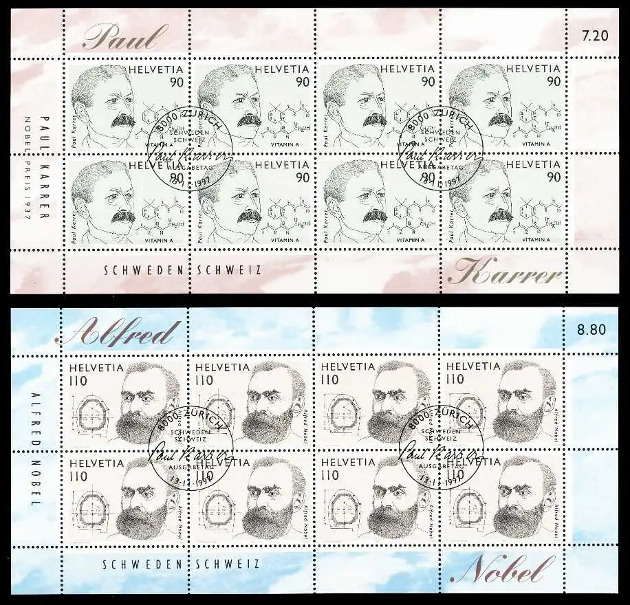 Ausgabe Nobelpreis, kompletter Kleinbogensatz mit 8 Marken mit ESST