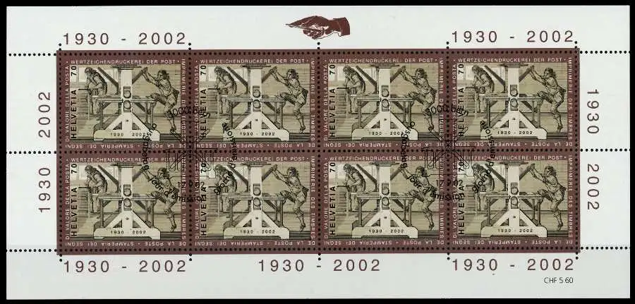 70 C Wert aus der Ausgabe Briefmarkenherstellung im Kleinbogen mit 8 Marken, mit ESST