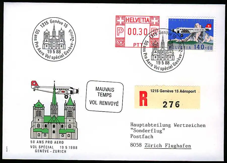 140 + 60 C Wert aus der Ausgabe Pro Aero 1988, Sonderflug Geneve / Zürich