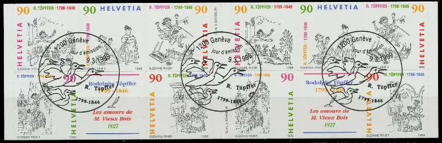 Ganzes Markenheftchen aus der Ausgabe 200. Geburtstag von Rodolphe Töpffer, selbstklebend aus MH mit Zierfeld, mit ESST