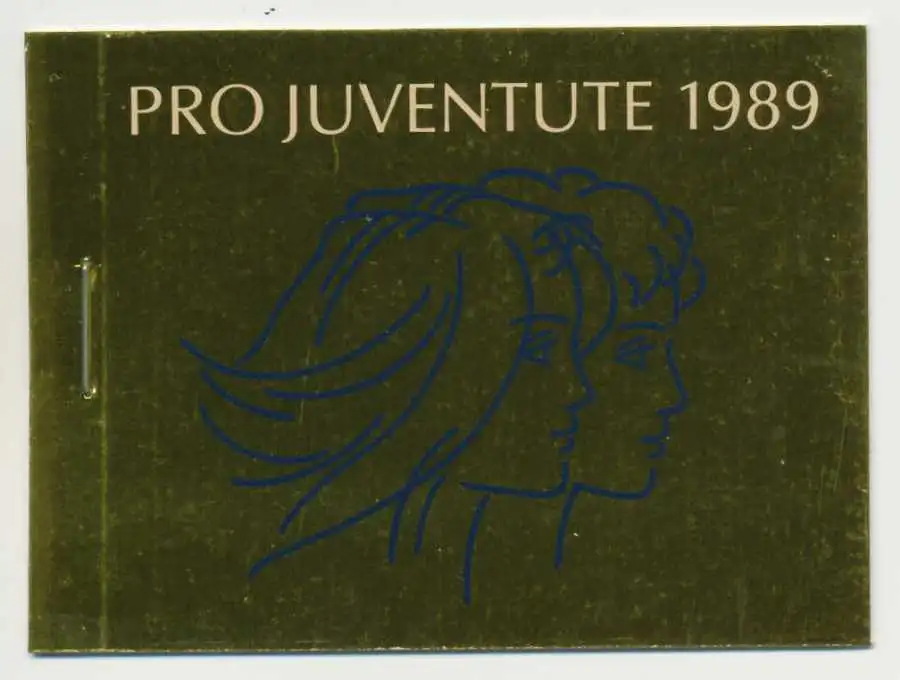 Markenheftchen Pro Juventute 1989, die goldenen Deckel sind naturgemäß etwas anfällig für Druck und Kratzspuren, die auf dem Scan aber wesentlich stärker hervortreten als tatsächlich vorhanden.