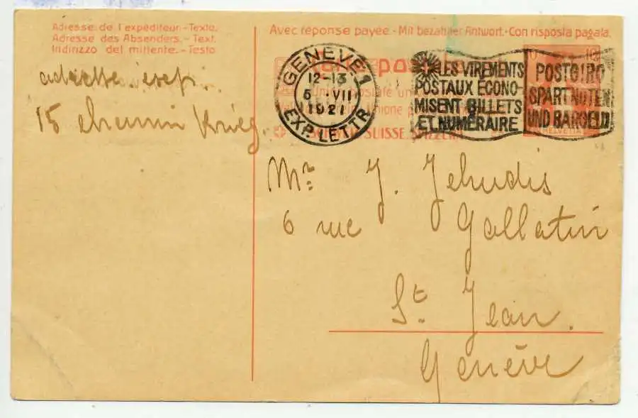 Postkarte Helvetia GENEVE, Ecke geknickt
